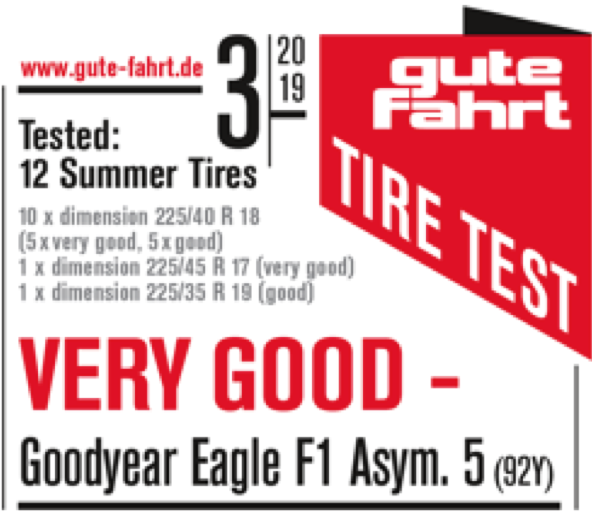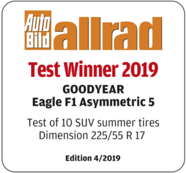 2019年1月14日固特異Eagle F1 Asymmetric 5於第二屆 Hevea Awards中榮獲2019年最佳車胎的殊榮。