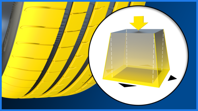 高度精粹的橡膠化合物,內含更多的矽膠,可在乾濕路面上,實現較短的煞停距離