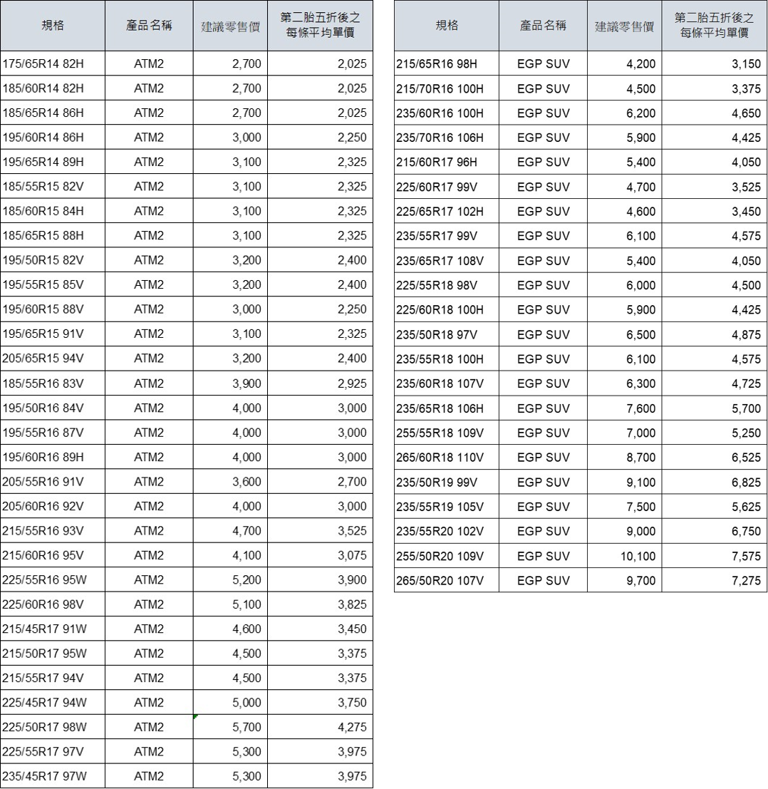 即日起固特異推出暢銷胎款第二胎五折活動(限定通路)! 產品價格及販售店點列表詳見下方。
