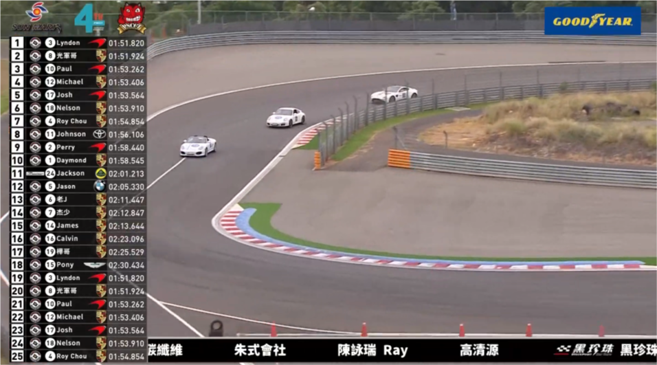 除了體驗Goodyear高性能胎款所帶來的駕馭樂趣之外,這次由PSCCT車主俱樂部所主辦的賽道日活動也有著不同於以往的創舉。最酷的莫過於將現場打造成一場賽事轉播活動,透過高規格的設備進行live直播當下的單圈速度與車輛名次,將車主與名次排列在轉播畫面左側,宛如觀看一場Porsche品牌賽事,讓Pit box現場不時傳來歡呼聲,增添了緊湊刺激的氛圍。更邀請了林沅滸+沈慧蘭賽車夫妻檔、林帛亨、將軍、廖君豪、小宇、李一志等車壇名人進行賽況播報,專業程度瞬間飆升,也為賽道日活動呈現了不同的創意與形式,為車主和參與活動的民眾帶來更多樂趣與歡樂。