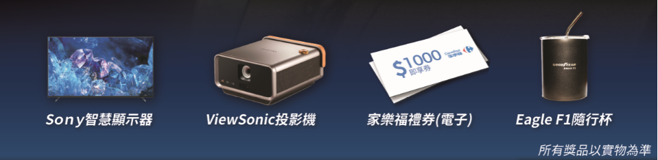 1. 抽獎贈品以實物為準,台灣固特異股份有限公司保留更改或中止活動的權利。
